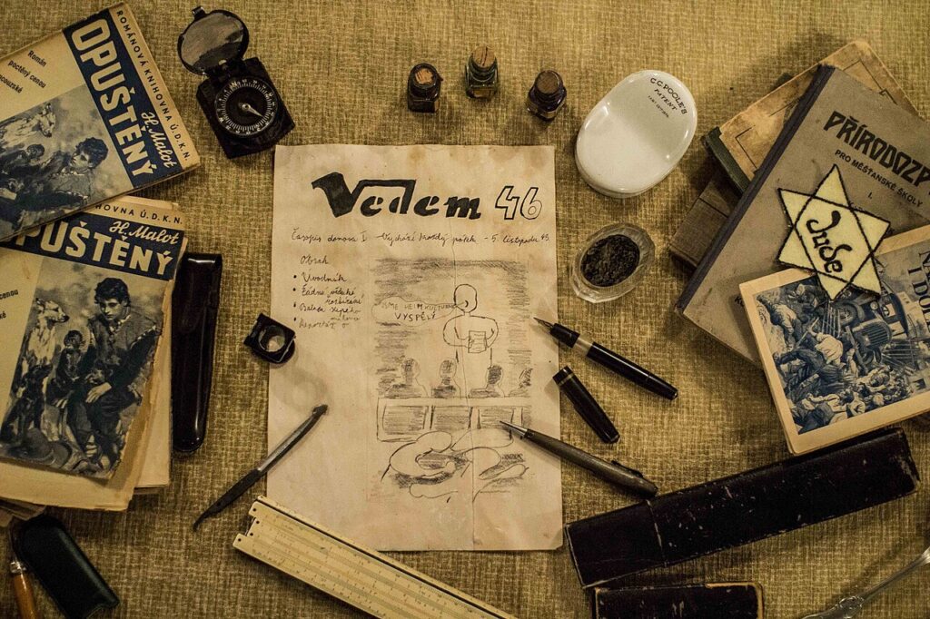 Specimenoj el inaŭguro de la migra ekspozicio pri la sekreta knaba gazeto VEDEM, eldonata en la geto de Terezín kaj pri ĝia ĉefredaktoro, denaska esperantisto Petr Ginz – 4.1.2024 en la Urba Biblioteko en Písek.